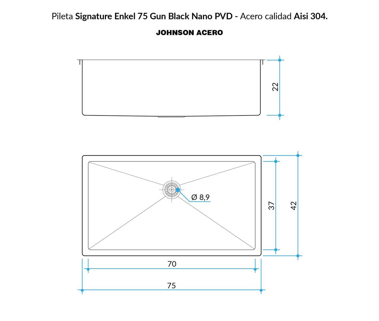 JOHNSON SIGNATURE ENKEL INOX PILETA 75*42*22 CMS C/ACCESORIOS